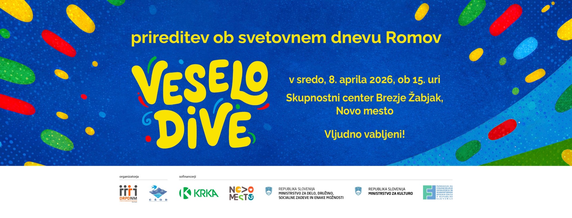 vljudno vas vabimo na tradicionalno prireditev ob svetovnem dnevu Romov Veselo dive, ki bo v sredo, 8. aprila 2026, ob 15. uri pred Skupnostnim centrom Brezje Žabjak v Novem mestu.