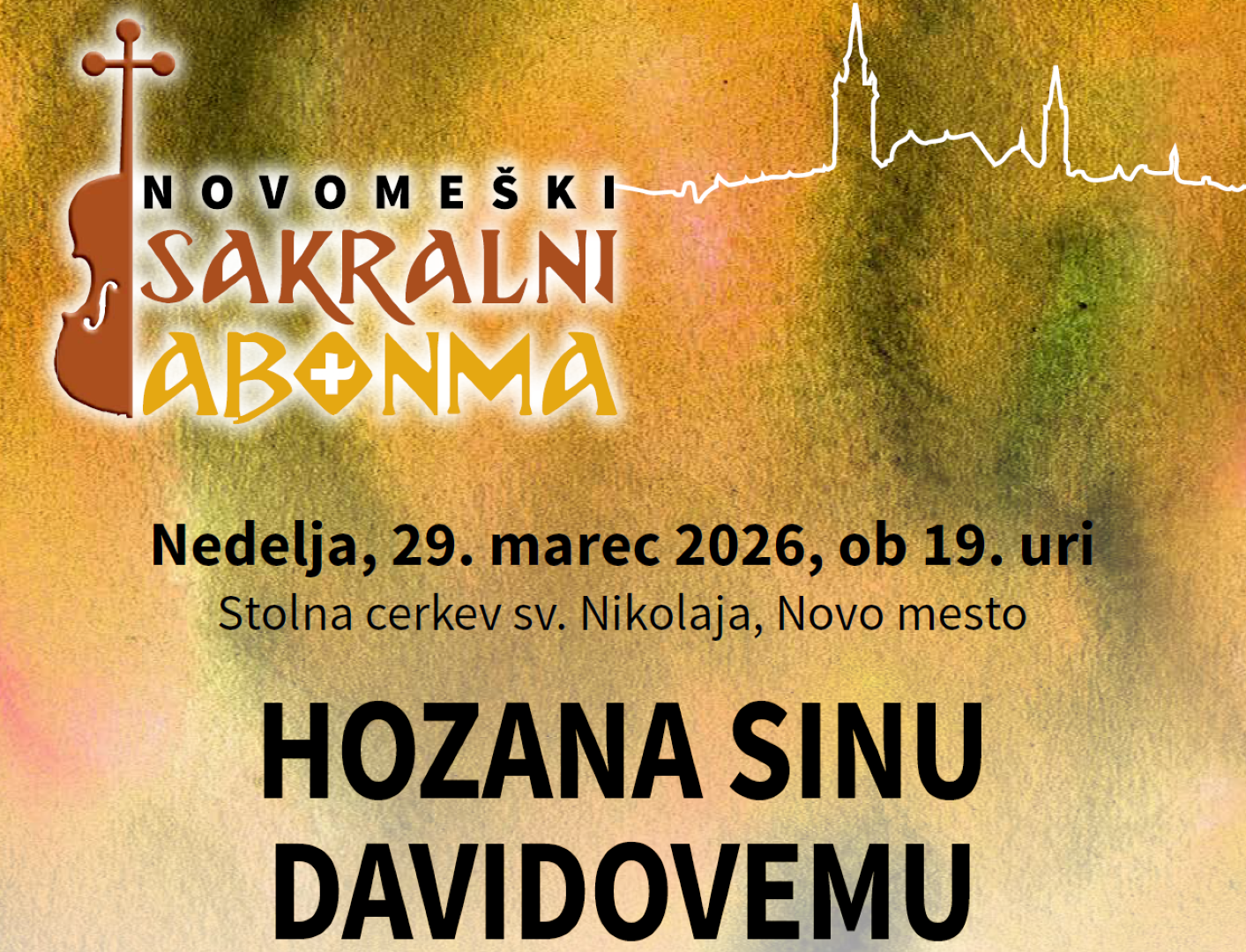 Vabljeni na koncert Hozana sinu Davidovemu v sklopu Novomeškega sakralnega abonmaja, ki bo v nedeljo, 29. 3. 2026, ob 19. uri v Stolni cerkvi sv. Nikolaja Novo mesto. Izvedba: Blaž Klemenčič: Dominica in Palmis, John Rutter: Gloria, MePZ Dolenjske s spremljevalno inštrumentalno zasedbo, dirigent: Jernej Fabijan. Vstopnine ni, prostovoljni prispevki so namenjeni delovanju abonmaja. Spletna… |
