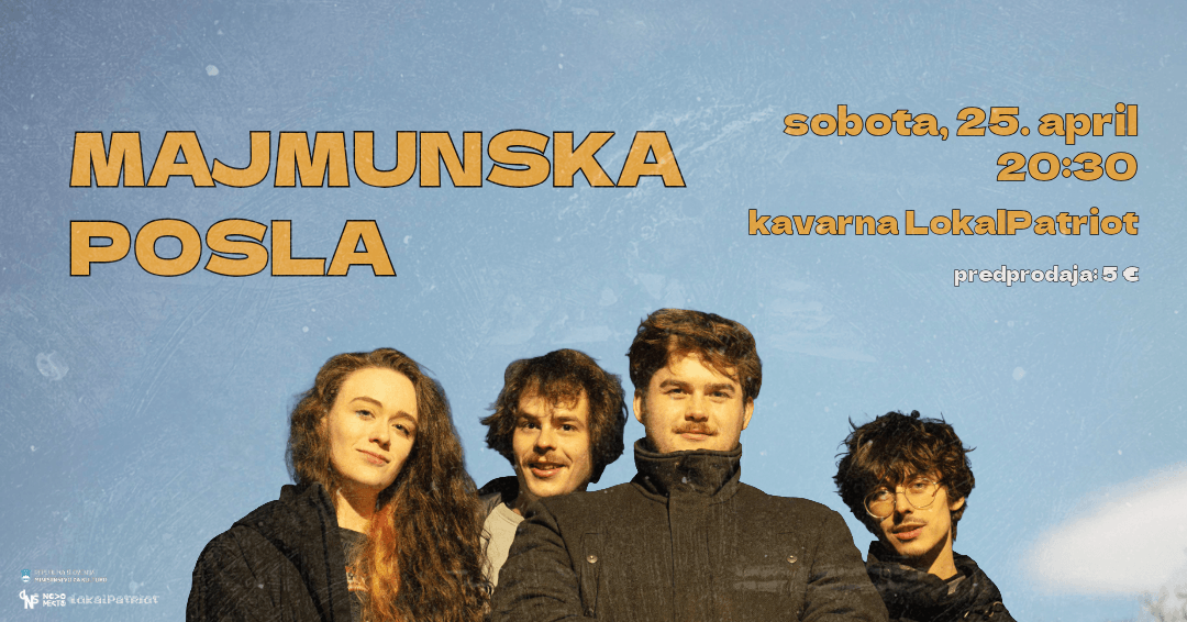 Vabljeni v LokalPatriot na koncert zasedbe Majmunska posla, ki bo v soboto, 25. 4. 2026, ob 20.30. Spletna stran dogodka.