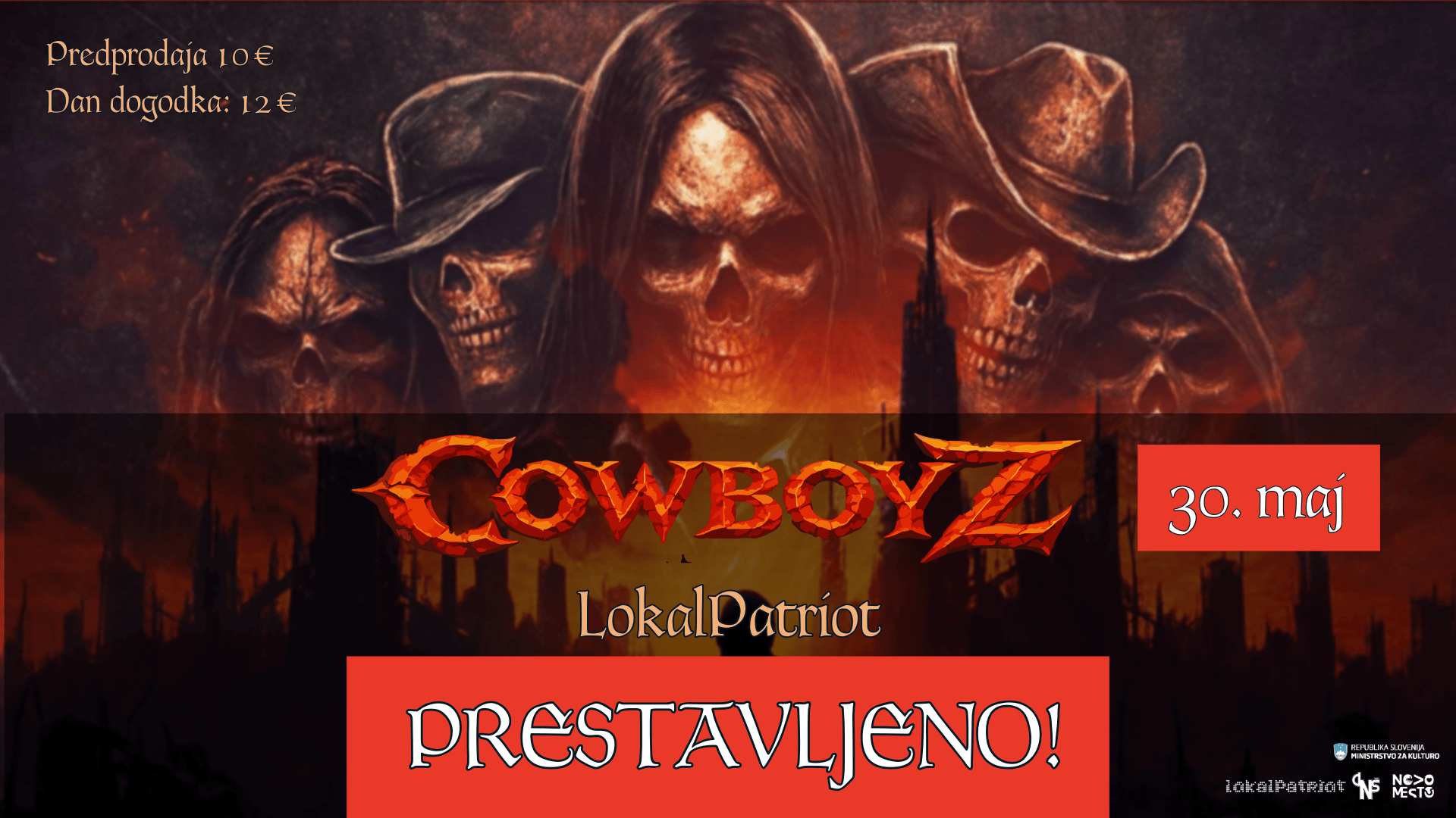 LokalPatriot vabi na konecrt CowboyZ - We Are Here As One, ki bo v soboto, 30. 5. 2026, ob 20.30 v LokalPatriotu. CowboyZ (prej Cowboys From Hell) je petčlanska zasedba z Obale, ki deluje od konca leta 2014. S prva so začeli kot metal cover band, ki pa je prerastel v avtorsko zverino. Zgledujejo se…